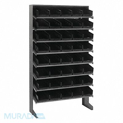 E1546 Pick Rack Bin Style Shelf Bin Material Polypropylene (40) 4 in x 6 5/8 in x 11 5/8 in Bin HxWxD Bin Height 4 in Bin Front Type Open Bin Depth 11 5/8 in Bin Color Black Frame Material Steel Frame Color Gray Powder Coated Includes Bins Yes Bin Width 6 5/8 in Load Capacity per Shelf 50 lb Number of Bins 40 Number of Shelves 8 Number of Usable Sides 1 Overall Depth 12 in Overall Height 60 in Overall Width 36 in Powder Coated Shelf Finish Steel Shelf Material No