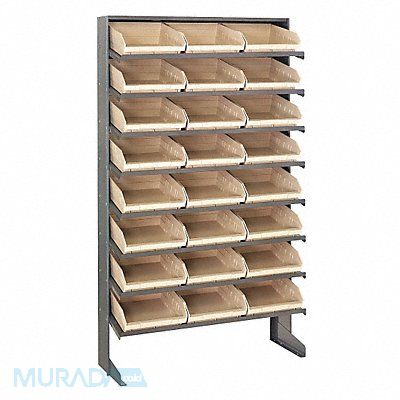 E1548 Pick Rack Bin Style Shelf Bin Material Polypropylene (24) 4 in x 11 1/8 in x 11 5/8 in Bin HxWxD Bin Height 4 in Bin Front Type Open Bin Depth 11 5/8 in Bin Color Ivory Frame Material Steel Frame Color Gray Powder Coated Includes Bins Yes Bin Width 11 1/8 in Load Capacity per Shelf 50 lb Number of Bins 24 Number of Shelves 8 Number of Usable Sides 1 Overall Depth 12 in Overall Height 60 in Overall Width 36 in Powder Coated Shelf Finish Steel Shelf Material No
