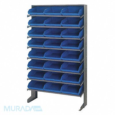 E1548 Pick Rack Bin Style Shelf Bin Material Polypropylene (24) 4 in x 11 1/8 in x 11 5/8 in Bin HxWxD Bin Height 4 in Bin Front Type Open Bin Depth 11 5/8 in Bin Color Blue Frame Material Steel Frame Color Gray Powder Coated Includes Bins Yes Bin Width 11 1/8 in Load Capacity per Shelf 50 lb Number of Bins 24 Number of Shelves 8 Number of Usable Sides 1 Overall Depth 12 in Overall Height 60 in Overall Width 36 in Powder Coated Shelf Finish Steel Shelf Material No
