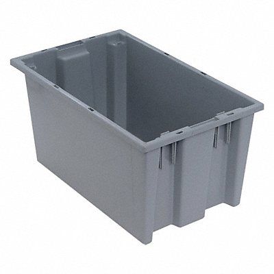 E1879 Stack and Nest Container Container Wall Type Solid Fork Pockets No Includes Lid No Material Plastic Maximum Operating Temperature 135 Degrees F Minimum Operating Temperature -20 Degrees F Body Color Gray Nestable Yes Overall Height 9 in Overall Length 18 in Overall Width 11 in Resistant To Chemicals Corrosion Water Stackable Yes Stacking Capacity 100 lb Volume Capacity 5.7 gal Weight Capacity 60 lb NSF Certified No Bottom Inside Length 15 1/8 in Bottom Inside Width 9 1/8 in