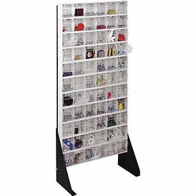 Single Sided Tip-Out Bin Rack Compatible Bin Manufacturer Model Number QTB306IV Frame Finish Powder Coated Mounting Location Freestanding Overall Height 52 in Overall Length 10 in Overall Width 23 5/8 in Weight Capacity 300 lb Number of Tiers 11 Bin Color Beige Bin Inside Depth 2 5/8 in Bin Inside Height 3 3/4 in Bin Inside Width 3 1/2 in Compatible Bin Grainger Part Number 1VH76 Divider Adjustment Increments Not Applicable Frame Material Thickness 14 ga Includes Dividers No