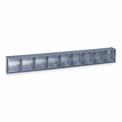 F1576 Tip-Out Bin Frame Color Gray Frame Finish Unfinished Mounting Location Freestanding Wall Overall Height 3 1/8 in Overall Length 2 1/2 in Overall Width 23 5/8 in Stackable Yes Volume Capacity 0.05 cu ft Number of Tiers 1 Bin Color Clear Bin Inside Depth 1 3/4 in Bin Inside Height 2 1/2 in Bin Inside Width 2 1/4 in Divider Adjustment Increments Not Applicable Includes Dividers No Material Plastic Mobility Stationary Number of Bins 9 Opening Angle 45 Degrees