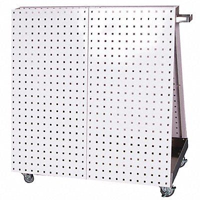 A-Frame Pegboard Truck Color White Epoxy Coated Finish Material Steel Overall Depth 36 in Overall Height 39 in Overall Width 21 in Assembled Unassembled 3 in Caster Wheel Diameter (2) Rigid (2) Swivel Caster Wheel/Configuration Neoprene Caster Wheel/Tread Material 18 sq ft Includes Aluminum Frame Tool Cart with Tray Number of Panels 4 Panel Load Capacity 150 lb Peg Hole Shape Square Peg Hole Size 3/8 in Peg Hole Spacing 1 1/2 in Whole Unit Load Capacity 800 lb