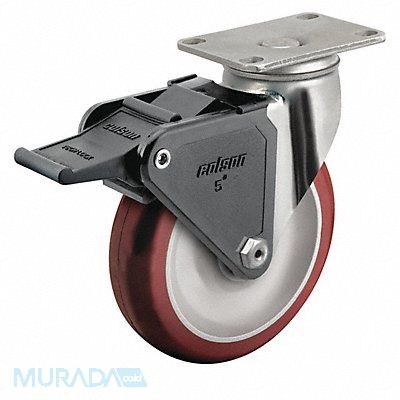 Swivel Standard Plate Caster Load Rating 300 lb Swivel Lock Type No Lock Included Wheel Dia 5 in Wheel Width 1 1/4 in Wheel/Tread Material Polyurethane Wheel Core Material Polyolefin Non-Marking Yes Number of Wheels 1 Caster Brake Type Side Pedal Brake Tread Shape Standard