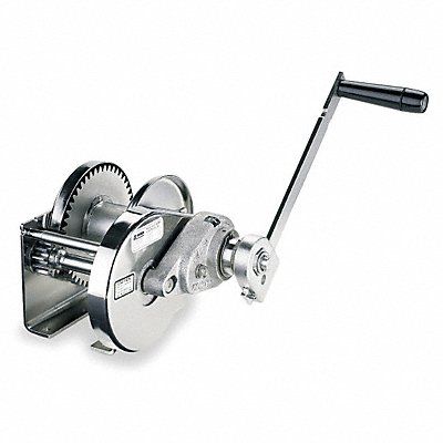 Hand Winch Winch Gear Type Spur Winch Type Lifting Pulling 1st Layer Load Capacity 2 000 lb Winch Gear Ratio 14.7 1 Brake Included Yes Overall Length 10 in Overall Width 14 1/2 in Overall Height 15 3/16 in Drum Capacity for 3/16 in Cable 110 ft Drum Capacity for 1/4 in Cable 59 ft Drum Capacity for 7/32 in Cable 49 ft Drum Capacity for 5/16 in Cable 39 ft Frame Material Stainless Steel Frame Color Natural Frame Finish Electropolished Handle Length 11 in