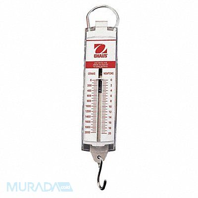 Hanging Scale Capacity 1000g Analog Linear Scale Display Scale Graduations 10g Housing Material Stainless Steel Digital/Mechanical Mechanical Weighing Units g Overall Height 10 3/8 in Overall Depth 7/8 in Overall Width 1 7/16 in Standards A versatile and inexpensive way to measure a variety of materials. Available in both Dial and Pull type models with a wide range of weighing units including grams pounds ounces and newtons and colored faceplates for easy identification.