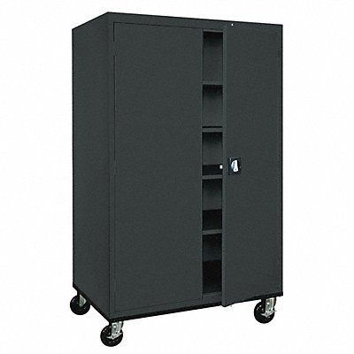 Storage Cabinet Base Type Casters Body Panel Type Solid Cabinet Color Black Cabinet Material Steel Cabinet Storage Components Shelves Door Handle Type Recessed Pull Door Type Solid Duty Rating Medium Duty For Use Indoors/Outdoors No Frame Assembled Assembled Load Capacity per Shelf 230 lb Lock Type Keyed Mobility Mobile Mounting Location Freestanding Number of Shelves 4 Overall Depth 24 in Overall Height 78 in Overall Width 46 in Audit Trail Storage None