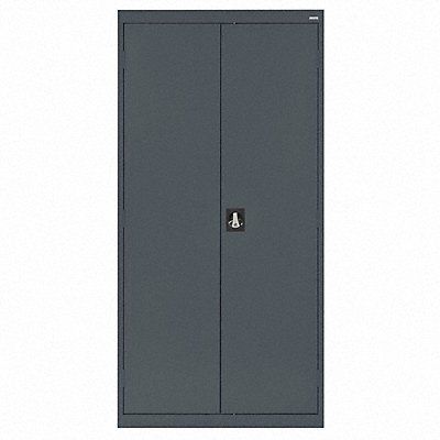Storage Cabinet Base Type Frame Body Panel Type Solid Cabinet Color Gray Cabinet Material Steel Cabinet Storage Components Hanging Rods Shelves Door Handle Type Recessed Pull Door Type Solid Duty Rating Medium Duty For Use Indoors/Outdoors No Frame Assembled Assembled Load Capacity per Shelf 200 lb Lock Type Keyed Mobility Stationary Mounting Location Freestanding Number of Shelves 4 Overall Depth 18 in Overall Height 72 in Overall Width 36 in Audit Trail Storage None
