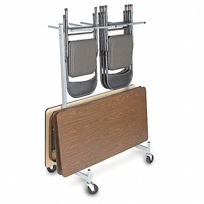Hanging Rack for Folding Chairs Rectangular Tables Max Number of Tables 8 Load Capacity 500 lb For Max Number of Chairs 24 For Maximum Number of Vertical Tables 8 For Maximum Table Length 96 in For Maximum Table Width 30 in For Minimum Chair Width 13 in For Maximum Chair Width 16 in Caster Wheel Dia 5 in Caster Wheel Type Standard Caster Mounting Type Stem Caster Brake Type No Brake Included Caster Wheel/Tread Material Phenolic
