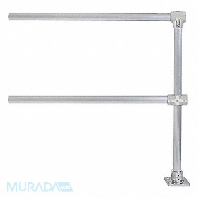 Handrail Extension Handrail Shape Round Handrail Component Material Aluminum Top Rail Height 42 in 96 in Handrail Dimensions 1 7/8 in Color Silver Mounting Plate Dimensions 5 in x 5 in Includes (1) Post and (2) Rails 1-1/2 in Pipe Overall Height 42 in Mounting Hole Dia 7/16 in Number of Mounting Holes 4 Midrail Height 21 in