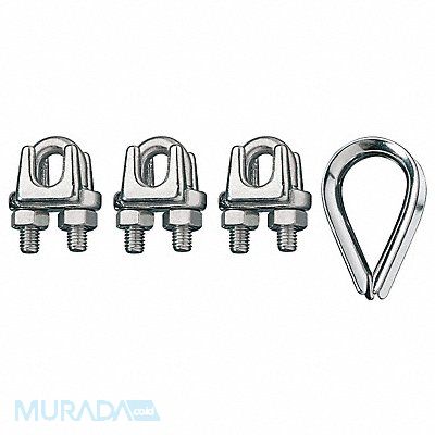 Wire Rope Clip and Thimble Kit Clip Type U-Bolt Material 316 Stainless Steel For Wire Rope Dia 3/8 in Min Number of Clips 3 Rope Turn Back 6 1/2 in Min Torque 45 ft-lb Finish Natural Includes (1) Thimble (3) Clips