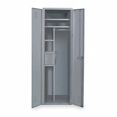 Wardrobe Locker Frame Assembled Assembled Number of Shelves 5 Includes Footlocker No Includes Hanging Rod Yes Includes Security Box Yes Locker Color Gray Number of Compartments 2 Open Front No Overall Depth 24 in Overall Height 72 in Overall Width 24 in Security Box Location Left Side Includes Center Partition Includes Keys Yes Includes Locks Yes Locker Opening Depth 23 in Locker Opening Height 72 in Locker Opening Width 21 1/4 in Lock Type Padlock Hasp Number of Hooks 2