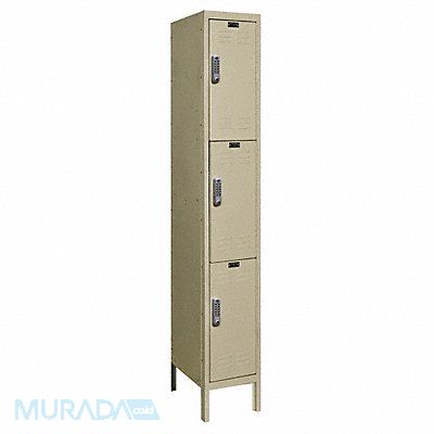 Wardrobe Locker Audit Trail Storage None Frame Assembled Unassembled Number of Tiers 3 Number of Units Wide 1 Door Type Louvered Frame Material Thickness 16 ga Includes Number Plates Yes Locker Color Tan Lock Type Electronic Keypad Overall Depth 18 in Overall Height 78 in Overall Width 12 in Handle Type Pull Locker Finish Powder Coated Locker Material Steel Number of Lockers 3 Opening Depth 17 in Opening Height 22 1/4 in Opening Width 9 1/4 in