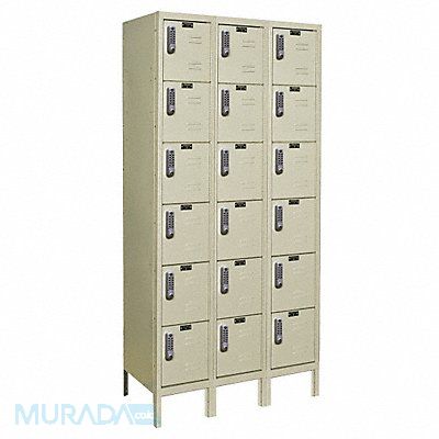 Box Locker Audit Trail Storage None Frame Assembled Unassembled Number of Tiers 6 Number of Units Wide 3 Door Type Louvered Frame Material Thickness 16 ga Includes Number Plates Yes Locker Color Tan Lock Type Electronic Keypad Overall Depth 18 in Overall Height 78 in Overall Width 36 in Handle Type Pull Locker Material Steel Number of Lockers 18 Opening Depth 17 in Opening Height 11 1/2 in Opening Width 9 1/4 in