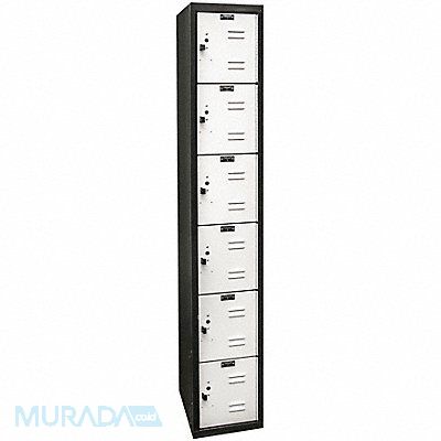 Box Locker Audit Trail Storage None Frame Assembled Unassembled Number of Tiers 6 Number of Units Wide 1 Door Type Louvered Frame Material Thickness 16 ga Includes Number Plates Yes Locker Color Light Gray/Black Lock Type Padlock Hasp Overall Depth 18 in Overall Height 72 in Overall Width 12 in Handle Type Pull Locker Material Steel Number of Lockers 6 Opening Depth 17 in Opening Height 10 1/2 in Opening Width 9 1/4 in