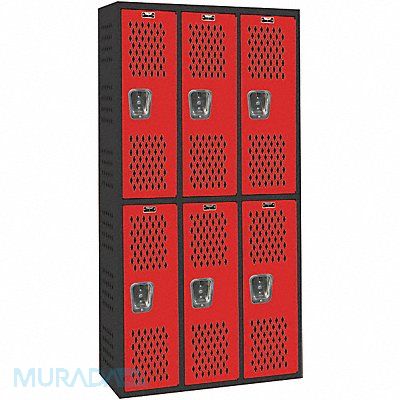 Wardrobe Locker Audit Trail Storage None Frame Assembled Assembled Number of Tiers 2 Number of Units Wide 3 Door Type Ventilated Frame Material Thickness 16 ga Includes Number Plates Yes Locker Color Red/Black Lock Type Padlock Hasp Overall Depth 18 in Overall Height 72 in Overall Width 36 in Handle Type Recessed Lift Locker Finish Powder Coated Locker Material Steel Number of Lockers 6 Opening Depth 17 in Opening Height 34 in Opening Width 9 1/4 in