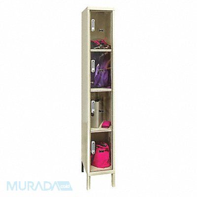 Box Locker Audit Trail Storage None Frame Assembled Assembled Number of Tiers 4 Number of Units Wide 1 Door Type Clearview Frame Material Thickness 16 ga Includes Number Plates Yes Locker Color Tan Lock Type Electronic Keypad Overall Depth 12 in Overall Height 78 in Overall Width 12 in Handle Type Pull Locker Material Steel Number of Lockers 4 Opening Depth 11 in Opening Height 16 1/2 in Opening Width 9 1/4 in