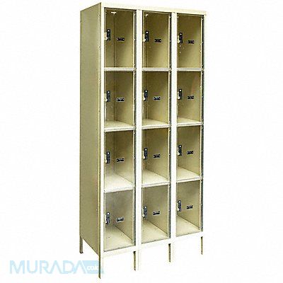 Box Locker Audit Trail Storage None Frame Assembled Unassembled Number of Tiers 4 Number of Units Wide 3 Door Type Clearview Frame Material Thickness 16 ga Includes Number Plates Yes Locker Color Tan Lock Type Padlock Hasp Overall Depth 15 in Overall Height 78 in Overall Width 36 in Handle Type Pull Locker Material Steel Number of Lockers 12 Opening Depth 14 in Opening Height 16 1/2 in Opening Width 9 1/4 in