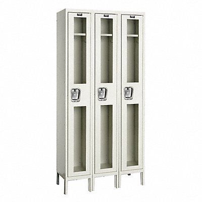 Wardrobe Locker Audit Trail Storage None Frame Assembled Assembled Number of Tiers 1 Number of Units Wide 3 Door Type Clearview Frame Material Thickness 16 ga Includes Number Plates Yes Locker Color Tan Lock Type Padlock Hasp Overall Depth 12 in Overall Height 78 in Overall Width 36 in Handle Type Recessed Lift Locker Finish Powder Coated Locker Material Steel Number of Lockers 3 Opening Depth 11 in Opening Height 69 in Opening Width 9 1/4 in