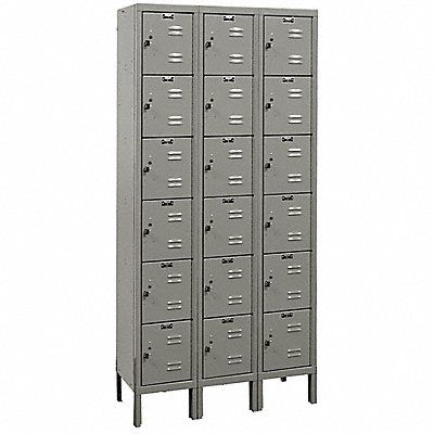 E1561 Box Locker Locker Door Type Louvered Unassembled Locker Configuration (3) Wide (6) Tier Number of Openings 18 Hooks per Opening None 9 1/4 in Opening Width Opening Depth 17 in Opening Height 10 1/2 in Overall Width 36 in Overall Depth 18 in Overall Height 78 in Color Dark Gray Locker Material Steel Finish Powder Coated Legs Included Yes Locker Handle Type Pull Locker Lock Type Accommodates Built-In Lock or Padlock Includes Number Plates with Mounting Hardware