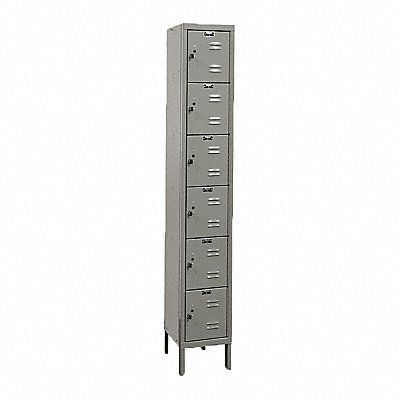 E1564 Box Locker Locker Door Type Louvered Assembled Locker Configuration (1) Wide (6) Tier Number of Openings 6 Hooks per Opening None 9 1/4 in Opening Width Opening Depth 17 in Opening Height 10 1/2 in Overall Width 12 in Overall Depth 18 in Overall Height 78 in Color Dark Gray Locker Material Steel Finish Powder Coated Legs Included Yes Locker Handle Type Pull Locker Lock Type Accommodates Built-In Lock or Padlock Includes Number Plate