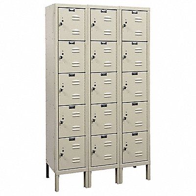 G3802 Box Locker Locker Door Type Louvered Assembled Locker Configuration (3) Wide (5) Tier Number of Openings 15 Hooks per Opening None 9 1/4 in Opening Width Opening Depth 17 in Opening Height 11 1/2 in Overall Width 36 in Overall Depth 18 in Overall Height 66 in Color Tan Locker Material Steel Finish Powder Coated Legs Included Yes Locker Handle Type Pull Locker Lock Type Accommodates Built-In Lock or Padlock Includes Number Plate