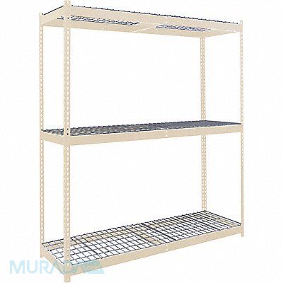Boltless Shelving Angle Overall Depth 36 in Overall Height 84 in Overall Width 96 in Shelf Gauge 4 ga Shelf Adjustment Increments 1 1/2 in Steel Steel Steel Center Support Includes Decking Yes 620 lb Whole Unit Load Capacity 1 860 lb Starter Open Post Gauge 14 ga Number of Shelves 3 Floor Mount Maximum Post Load Capacity 1 860 lb with Beams Evenly Spaced at 42 in Powder Coated Medium-Duty Tan