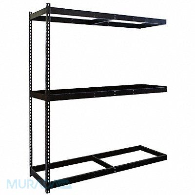 Boltless Shelving Angle Overall Depth 48 in Overall Height 84 in Overall Width 96 in Shelf Gauge 16 ga Shelf Adjustment Increments 1 1/2 in Steel None Steel Center Support Includes Decking No 620 lb Whole Unit Load Capacity 1 860 lb Add-On Open Greenguard Certified Post Gauge 14 ga Number of Shelves 3 Floor Mount Maximum Post Load Capacity 1 860 lb with Beams Evenly Spaced at 42 in Powder Coated Medium-Duty Black