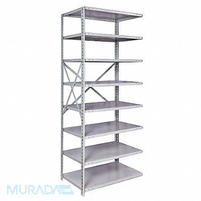 Metal Shelving Gray Powder Coated Frame Material Steel Load Capacity per Shelf 375 lb Whole Unit Load Capacity 3 000 lb Number of Shelves 8 Overall Depth 12 in Overall Height 84 in Overall Width 48 in Post Construction Angle Bead Shelf Configuration Add-On Shelf Style Solid Shelving Material Antimicrobial Steel Assembled Unassembled Shelving Gauge 22 ga Post Gauge 14 ga Shelf Adjustment Increments 1 1/2 in Number of Drawers 0 Duty Rating Medium-Duty