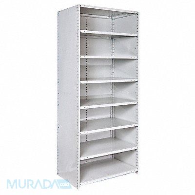 Metal Shelving Gray Powder Coated Frame Material Steel Load Capacity per Shelf 500 lb Whole Unit Load Capacity 4 000 lb Number of Shelves 8 Overall Depth 24 in Overall Height 84 in Overall Width 36 in Post Construction Angle Bead Shelf Configuration Starter Shelf Style Solid Shelving Material Antimicrobial Steel Assembled Unassembled Shelving Gauge 22 ga Post Gauge 14 ga Shelf Adjustment Increments 1 1/2 in Number of Drawers 0 Duty Rating Medium-Duty