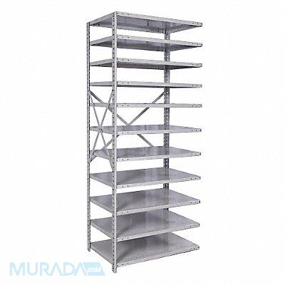 Metal Shelving Gray Powder Coated Frame Material Steel Load Capacity per Shelf 350 lb Whole Unit Load Capacity 3 850 lb Number of Shelves 11 Overall Depth 24 in Overall Height 84 in Overall Width 48 in Post Construction Angle Bead Shelf Configuration Add-On Shelf Style Solid Shelving Material Steel Assembled Unassembled Shelving Gauge 22 ga Post Gauge 14 ga Shelf Adjustment Increments 1 1/2 in Number of Drawers 0 Duty Rating Medium-Duty