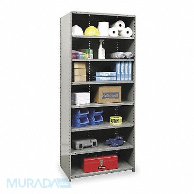 Metal Shelving Gray Powder Coated Frame Material Steel Load Capacity per Shelf 500 lb Whole Unit Load Capacity 4 000 lb Number of Shelves 8 Overall Depth 24 in Overall Height 84 in Overall Width 36 in Post Construction Angle Bead Shelf Configuration Starter Shelf Style Solid Shelving Material Steel Assembled Unassembled Shelving Gauge 22 ga Post Gauge 14 ga Shelf Adjustment Increments 1 1/2 in Number of Drawers 0 Duty Rating Medium-Duty