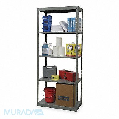 Metal Shelving Gray Powder Coated Frame Material Steel Load Capacity per Shelf 800 lb Whole Unit Load Capacity 4 000 lb Number of Shelves 5 Overall Depth 12 in Overall Height 84 in Overall Width 36 in Post Construction Angle Shelf Configuration Standalone Shelf Style Solid Shelving Material Steel Assembled Unassembled Shelving Gauge 18 ga Post Gauge 14 ga Shelf Adjustment Increments 1 1/2 in Number of Drawers 0 Duty Rating Heavy-Duty