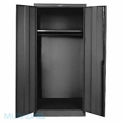 K3925 Storage Cabinet Base Type Frame Body Panel Type Solid Cabinet Color Black Cabinet Material Steel Cabinet Storage Components Hanging Rods Shelves Door Handle Type Swing Door Type Solid Duty Rating Medium Duty For Use Indoors/Outdoors No Frame Assembled Assembled Load Capacity per Shelf 250 lb Lock Type Keyed Mobility Stationary Mounting Location Freestanding Number of Shelves 1 Overall Depth 18 in Overall Height 78 in Overall Width 48 in Audit Trail Storage None
