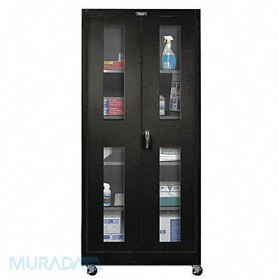 Storage Cabinet Base Type Casters Body Panel Type Solid Cabinet Color Black Cabinet Material Steel Cabinet Storage Components Shelves Door Handle Type Swing Door Type Clearview Duty Rating Light Duty For Use Indoors/Outdoors No Frame Assembled Assembled Load Capacity per Shelf 200 lb Lock Type Keyed Mobility Mobile Mounting Location Freestanding Number of Shelves 4 Overall Depth 24 in Overall Height 72 in Overall Width 36 in Audit Trail Storage None