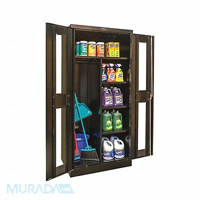 Storage Cabinet Base Type Frame Body Panel Type Solid Cabinet Color Black Cabinet Material Steel Cabinet Storage Components Hanging Rods Shelves Door Handle Type Swing Door Type Clearview Duty Rating Light Duty For Use Indoors/Outdoors No Frame Assembled Assembled Load Capacity per Shelf 200 lb Lock Type Keyed Mobility Stationary Mounting Location Freestanding Number of Shelves 4 Overall Depth 24 in Overall Height 72 in Overall Width 36 in Audit Trail Storage None