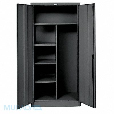 K4186 Storage Cabinet Base Type Frame Body Panel Type Solid Cabinet Color Black Cabinet Material Steel Cabinet Storage Components Hanging Rods Shelves Door Handle Type Swing Door Type Solid Duty Rating Medium Duty For Use Indoors/Outdoors No Frame Assembled Assembled Load Capacity per Shelf 250 lb Lock Type Keyed Mobility Stationary Mounting Location Freestanding Number of Shelves 4 Overall Depth 24 in Overall Height 78 in Overall Width 36 in Audit Trail Storage None