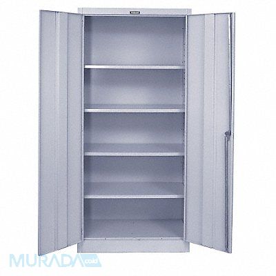 Storage Cabinet Base Type Frame Body Panel Type Solid Cabinet Color Light Gray Cabinet Material Steel Cabinet Storage Components Shelves Door Handle Type Swing Door Type Solid Duty Rating Medium Duty For Use Indoors/Outdoors No Frame Assembled Assembled Load Capacity per Shelf 250 lb Lock Type Keyed Mobility Stationary Mounting Location Freestanding Number of Shelves 4 Overall Depth 18 in Overall Height 78 in Overall Width 36 in Audit Trail Storage None