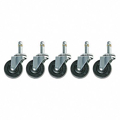 Friction-Ring Stem Caster Kit Swivel Caster 550 lb Load Rating 300 to 999 lb 2 in Wheel Dia 7/8 in Wheel Width Rubber Wheel/Tread Material 2 in Mounting Height Plain 7/16 in x 1 in Caster Stem Size Friction Ring Steel Caster Frame Material Zinc Plated Frame Finish No Non-Marking 1 Number of Wheels Package Quantity 5