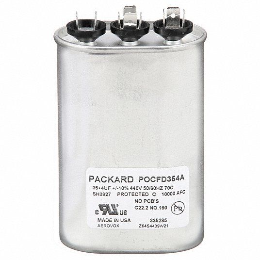 Motor Dual Run Capacitor Motor Dual Run Capacitor Oval 440/370V AC Microfarad Rating 35/4 Overall Height 4 1/4 in Case Material Aluminum