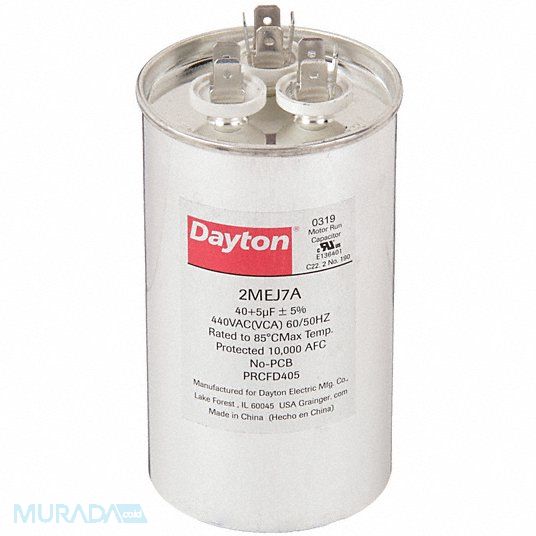 Motor Dual Run Capacitor Motor Dual Run Capacitor Round 440V AC Microfarad Rating 40/5 Overall Height 4 5/8 in Case Material Aluminum