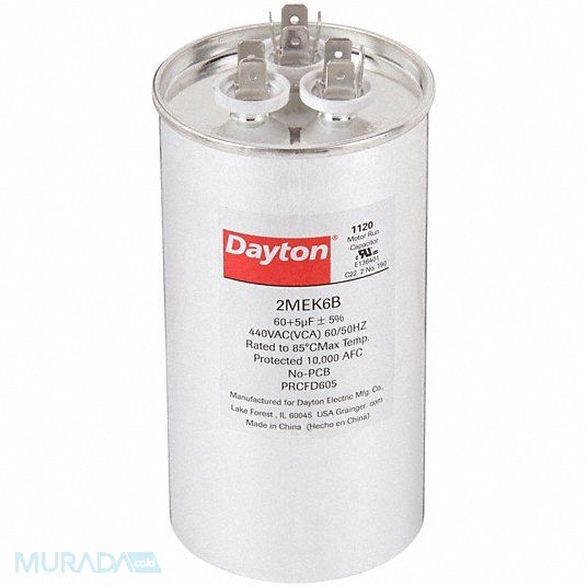 Motor Dual Run Capacitor Motor Dual Run Capacitor Round 440V AC Microfarad Rating 60/5 Overall Height 5 1/4 in Case Material Aluminum