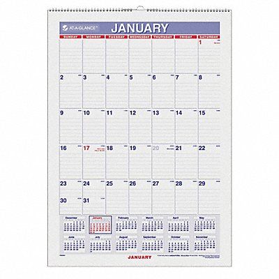 White Wall Calendar With Ruled Daily Blocks Format One Month Per Page Sheet Size 12 in x 17 in Color White