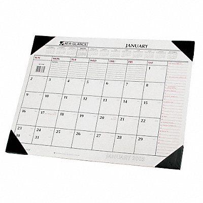 White Monthly Desk Pad Calendar with Notes Section Format One Month Per Page Sheet Size 22 in x 17 in Color White