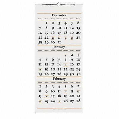 White Wirebound Three-Months-Per-Page Wall Calendar Format Three Months Per Page Sheet Size 12 1/4 in x 27 in Color White