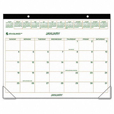 White Monthly Desk Pad Calendar Format One Month Per Page Sheet Size 22 in x 17 in Color White Features Full-Year Reference Calendar Muted Earth Color Scheme