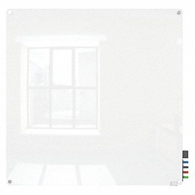 Dry Erase Board Board Properties Non-Magnetic Mounting/Mobility Type Wall Mounted Board Color White Dry Erase Height 48 in Dry Erase Width 48 in Depth 1 5/8 in Dry Erase Surface Finish Gloss Adjustable Height Range Not Adjustable Board Frame Material No Frame Dry Erase Surface Type Glass Corner Shape Rounded Includes Aluminum Stand-Offs Clear Acrylic Rear-Mounted Accessory Holder Eraser Markers Standards TAA Compliant