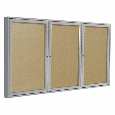 Enclosed Bulletin Board Push-Pin Board Material Vinyl Width 72 in Height 36 in Board Frame Material Aluminum Frame Color Silver Board Color Caramel Number of Doors 3 Door Type Hinged Includes (2) Keys Locks Mounting/Mobility Type Wall Mounted Door Material Acrylic Outdoor Enclosed Bulletin Board