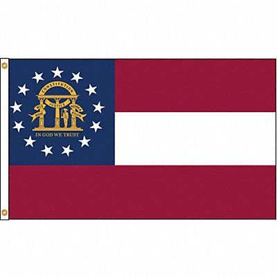 D3772 State Flag Georgia Indoor/Outdoor Style Header and Grommets Screen Printed Single/Reverse Image Height 5 ft Width 8 ft Min Flagpole Height 30 ft Material Nylon
