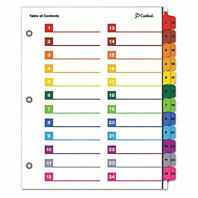 CARDINAL Divider 52 Tab Assorted, 51VA47